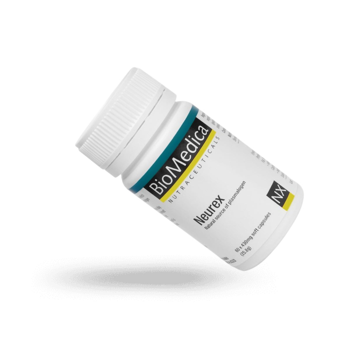 Neurex supplies plasmalogens naturally sourced from high-quality Hokkaido scallop oil. Plasmalogens are structural phospholipids in cell membranes across the brain, heart and immune system, and endogenous levels decline with age. Each serve provides approx. 0.5 mg plasmalogens.