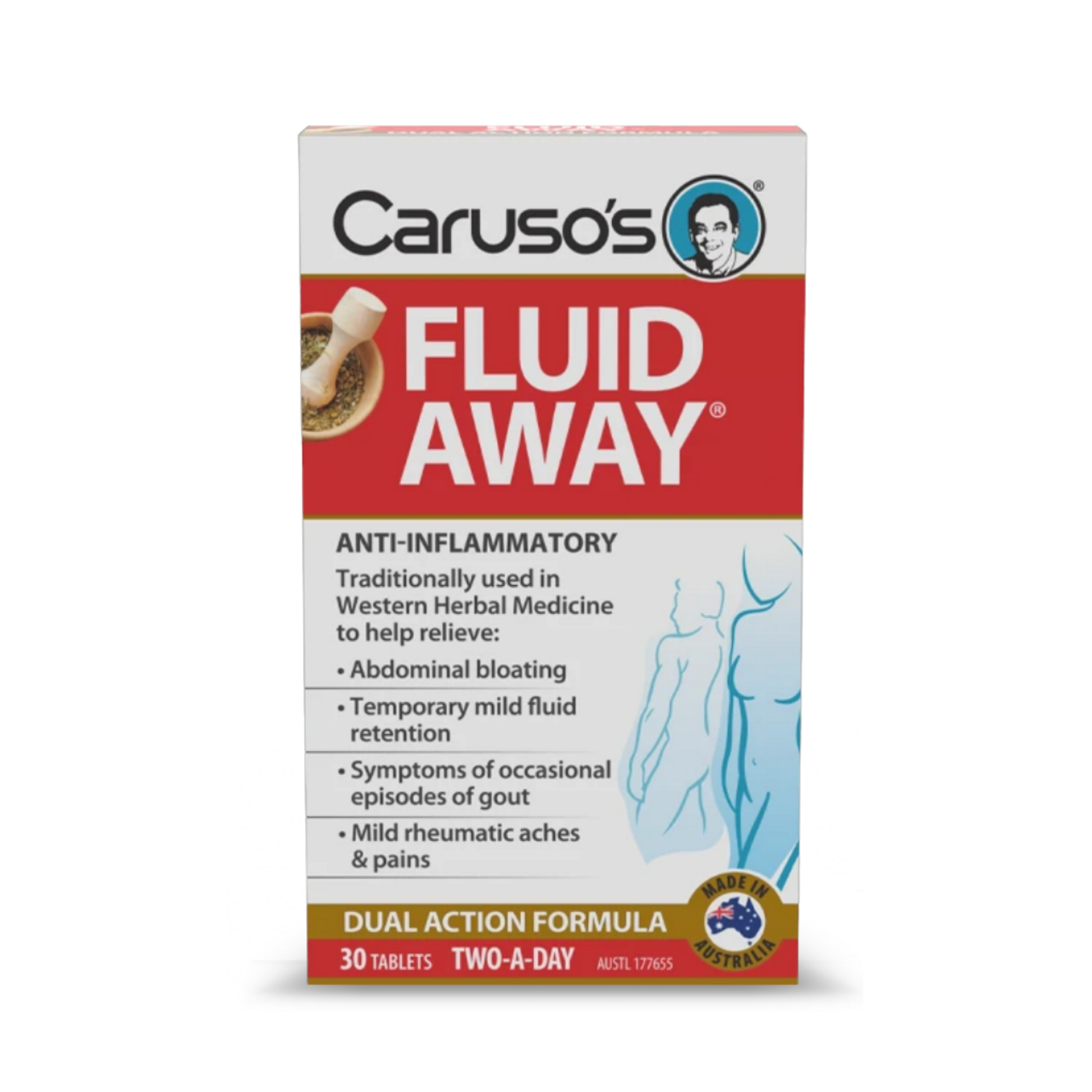 Caruso's Fluid Away has been developed for people who experience mild fluid retention. It contains three high-quality herbs: Celery, Dandelion and Phyllanthus, as well as Vitamin B6. These ingredients help to temporarily relieve mild fluid retention and assist the body's natural channels of elimination through the excretion of metabolic waste.