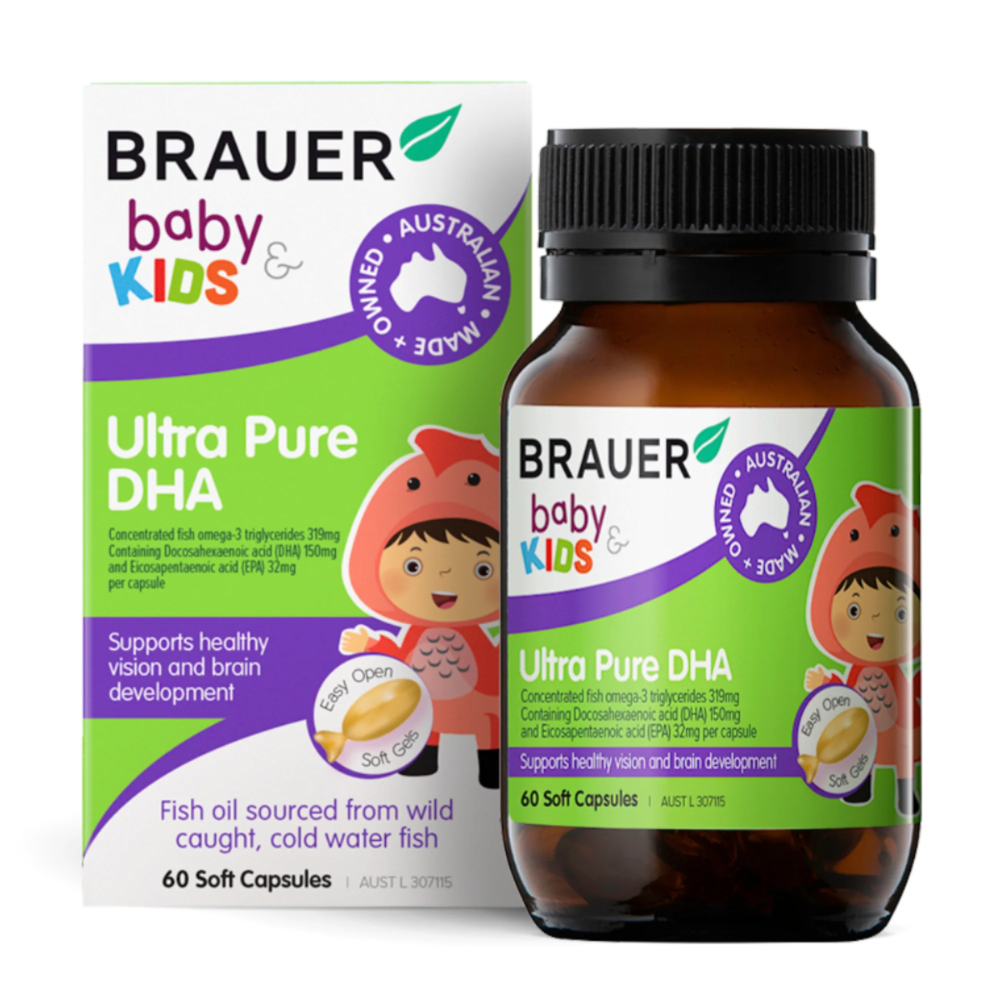 Brauer Baby & Kids Ultra-Pure DHA is a high-quality DHA for children 7 months and above, sourced from wild-caught, cold-water fish and comes in an easy-to-use, twist tail soft gel capsule. DHA helps to support healthy brain development and vision.
