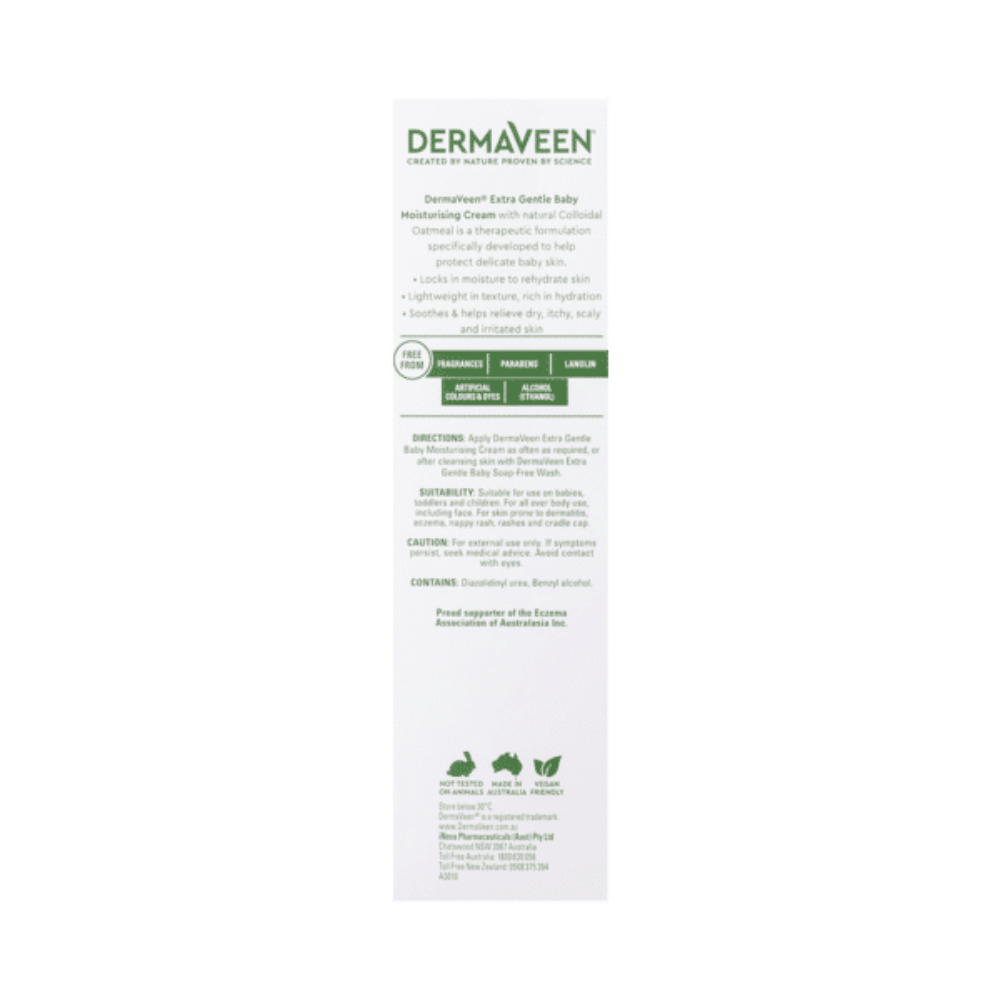 DermaVeen Extra Gentle Baby Moisturising Cream with Natural Colloidal Oatmeal is a therapeutic formulation specifically developed to help protect delicate baby skin.