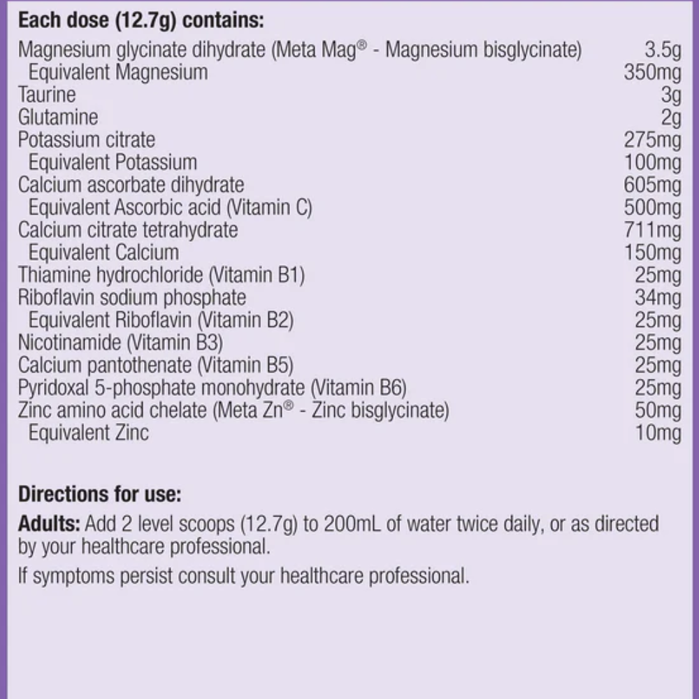 | Magnesium glycinate (Meta Mag®) | 3.5 g | 350 mg Magnesium |